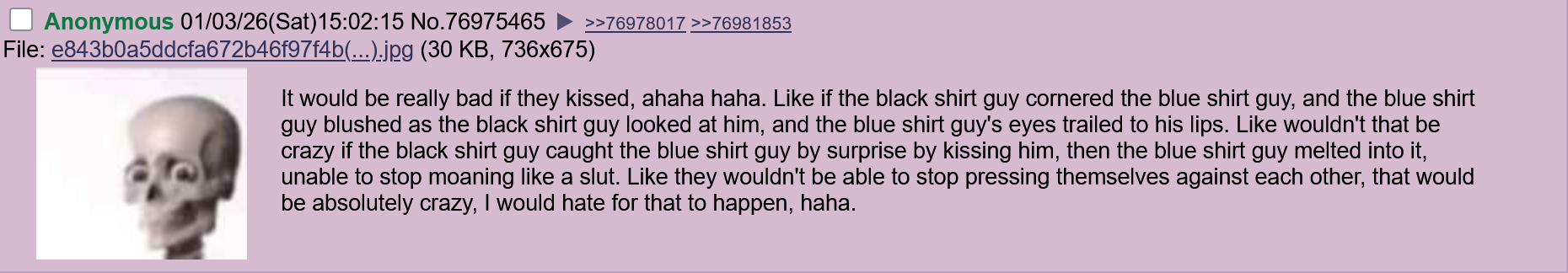 Some impromptu slash fanfiction from the thread.