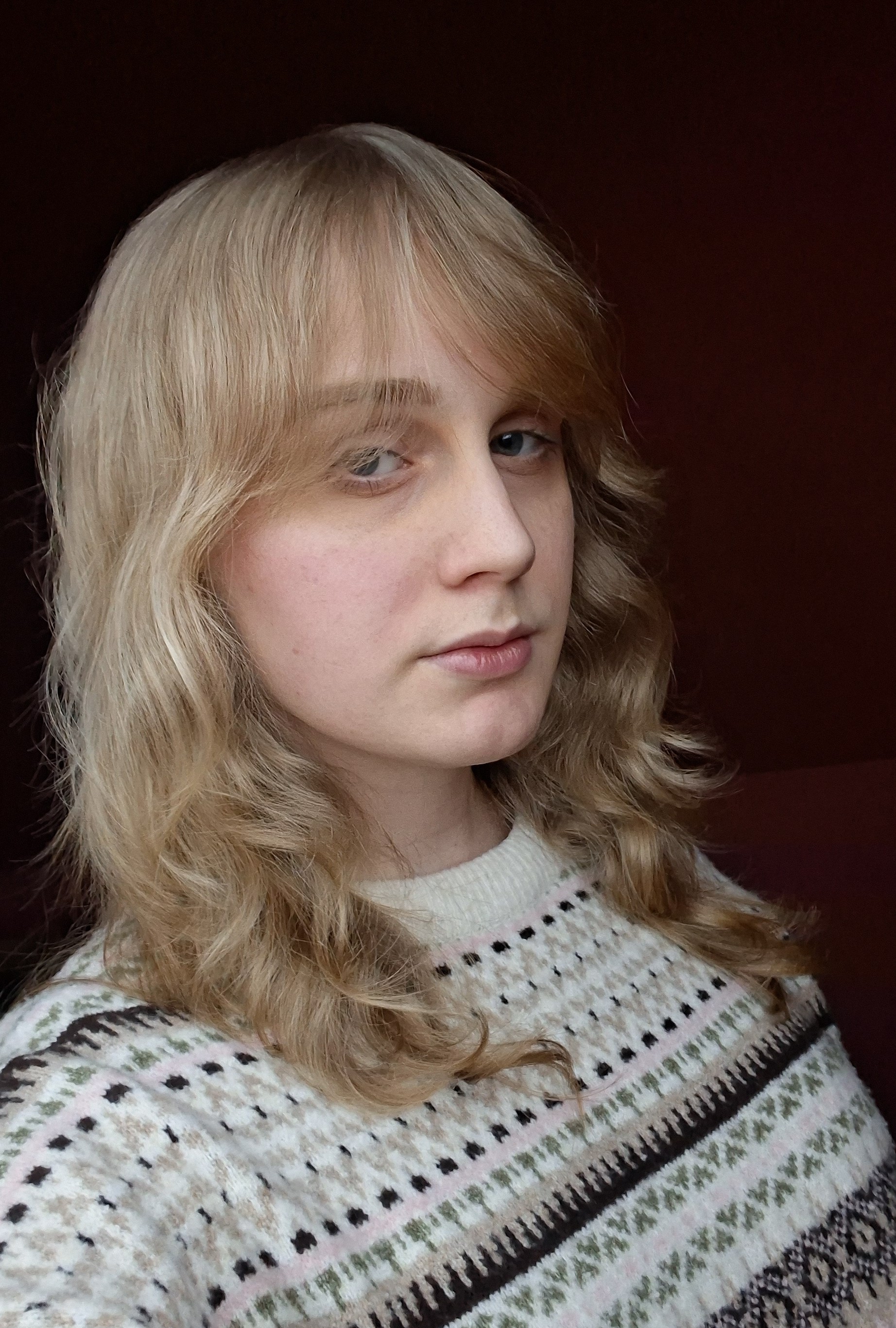 >>42298585>no outfitI usually outfit pass since i dress super fem and it's winter rn so clothes cover the frame. Honestly, probably anyone could pass with a white fem jacket and some cute shoes/skirt/scarf, even with a worse build than mine (6'1 and broad shoulders). The one here is different than in the first post, but similar style and ik I probably look retarded being a giant in cute clothes, but I refuse to be miserable in a t-shirt and jeans while I'm still young enough to get away with it>may be anglefagging but like. angles exist irlI actually tried to show the "bad" side (hence 2x photo from below) since that's how people see me anyway due to height. Feels like the low angle is genuinely the worst for me cause of my huge mandible and drooping eyelids, ig maby it helps with philtrum>>42297676Ngl I'm happy that the red is only temporary until I can bleach it lighter and go pink