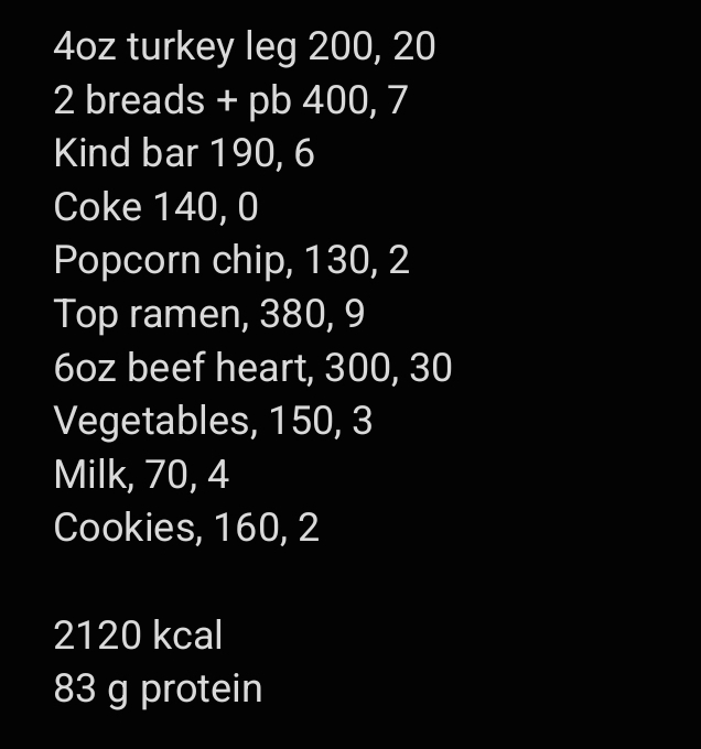 >>42325781This is what I ate today (calories/ protein)