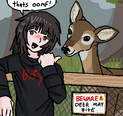 She’s just saying “that’s oomf “ because a seeing the deer reminds her of her “oomf”. That extra drawing I drew rn to confirm i was the artist, I just wanted to draw her looking stupid (girls are cute like that)