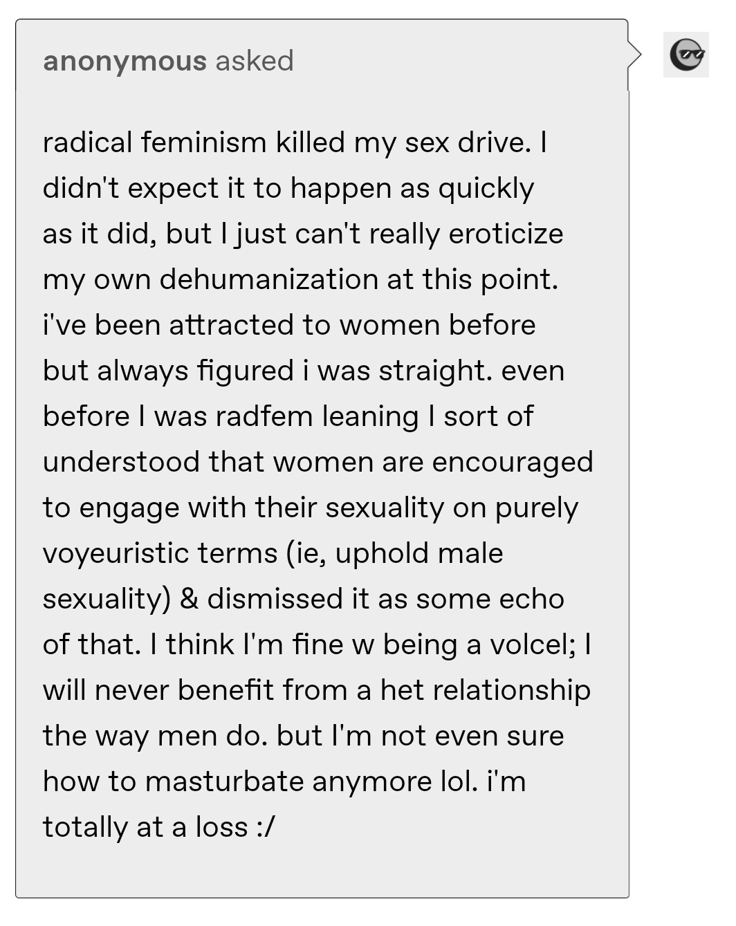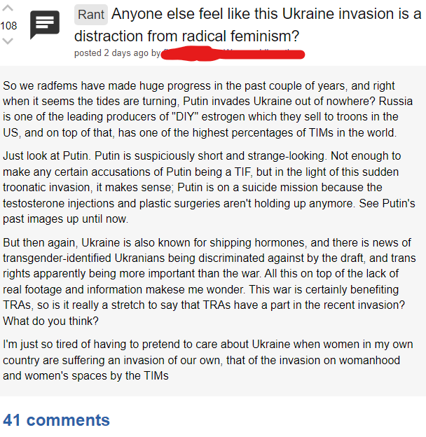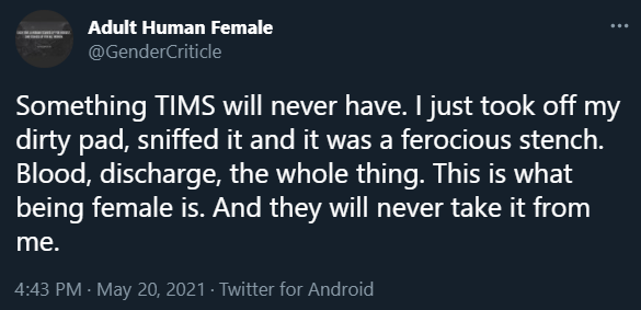 It's funny how people will claim men are obsessed with sex and their dicks and then you see shit like this and realize there's cis women out there who base their entire sense of self around their cunts.