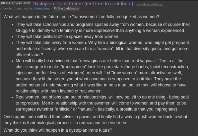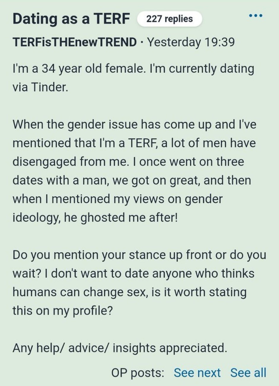 This board is proof that Terfs are mostly correct