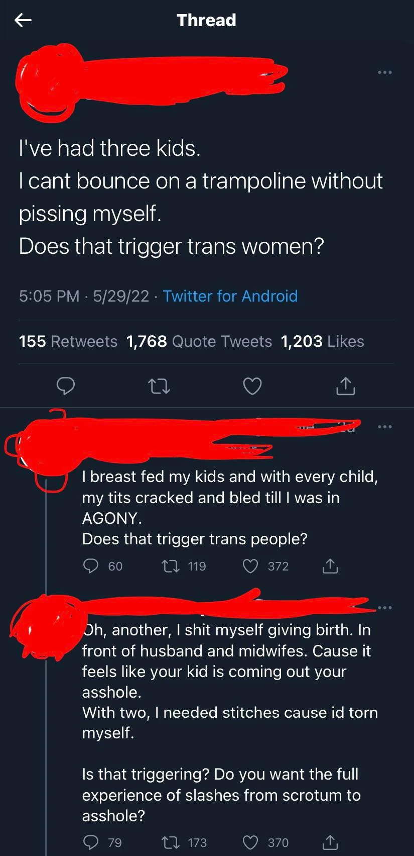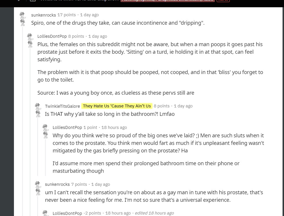 Sonething TIFS will never have. I just scooped out my foreskin, sniffed it and it was a ferocious stench. Smegma, urine, the whole thing. This is what being male is. And they will never take it from me.