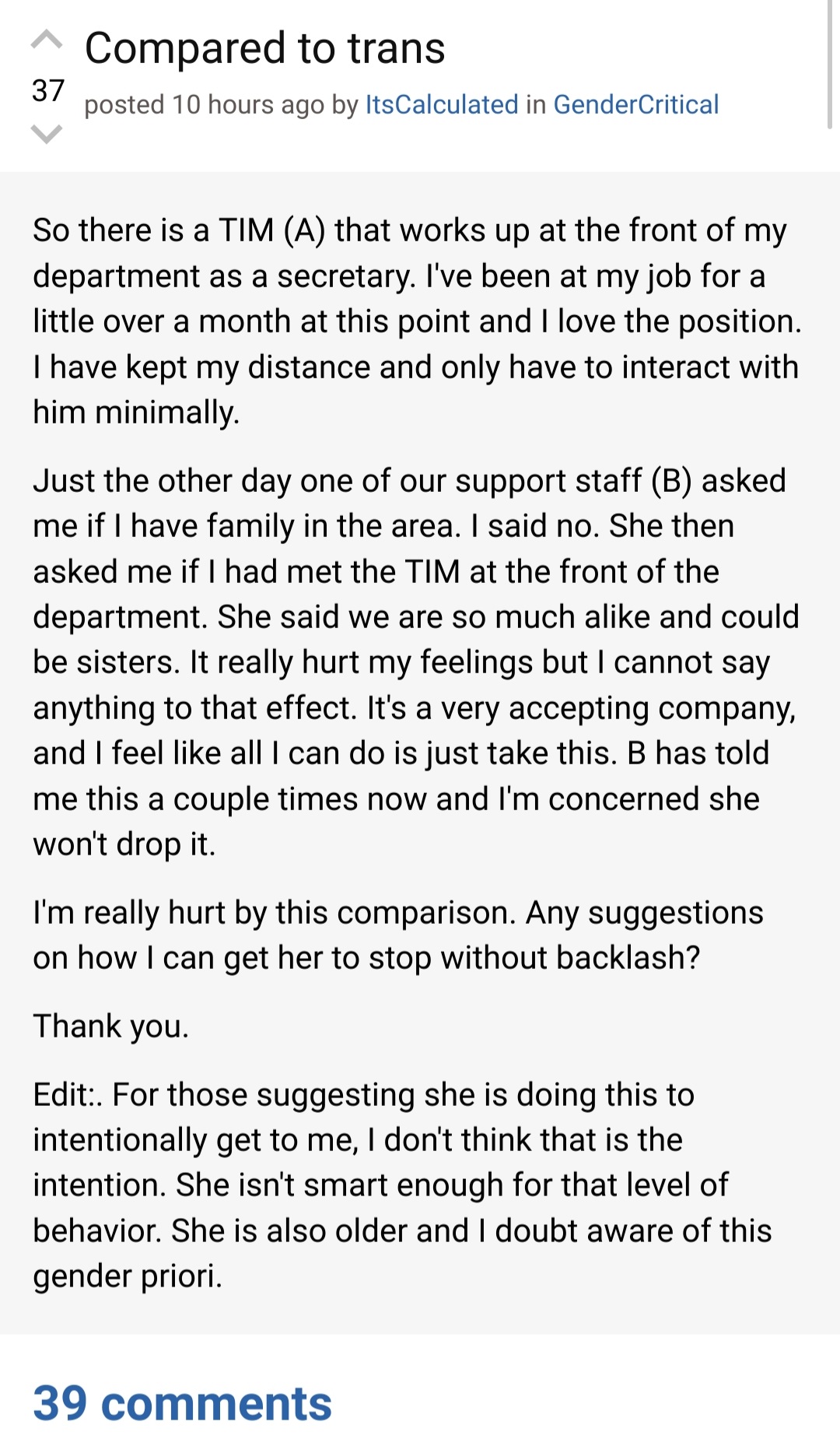 NOOOO!!! They compared me to a TRA!!