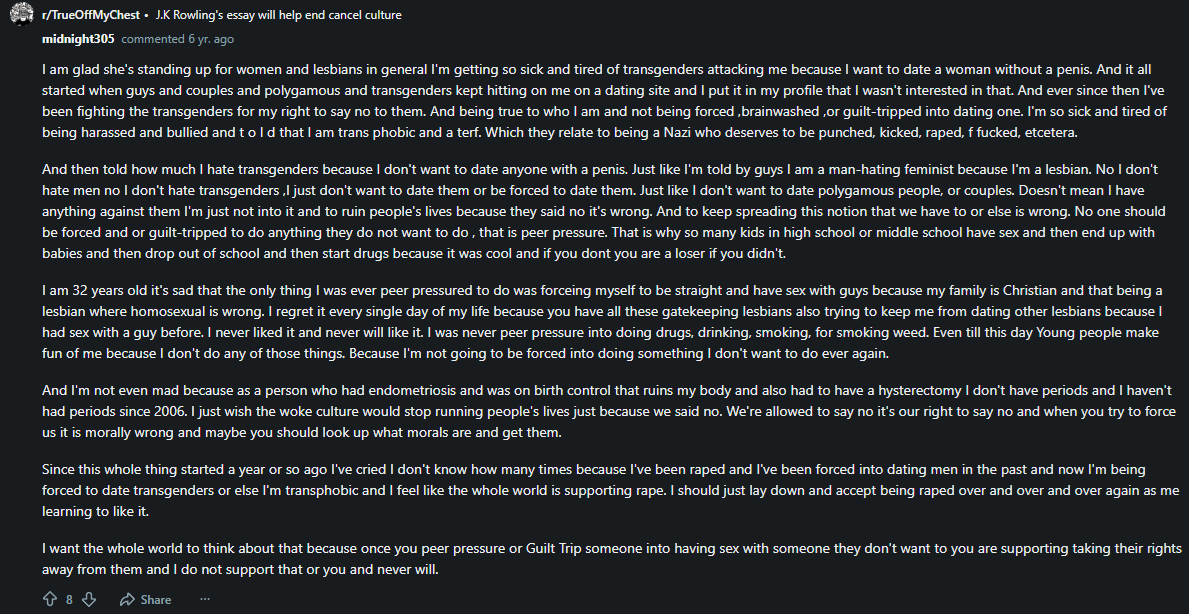 maybe today but 2020 was literally another different plane, I don’t blame terfs for being insane from 2019-2023
