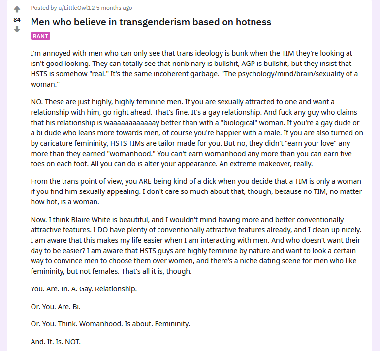 Cism incel take: It's not like they care a out large swaths of men anyway? Why are they seething about the prospect of a sub5 shagging a tranny?