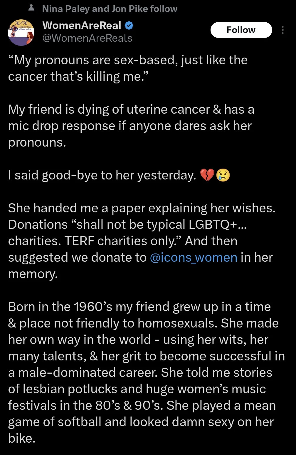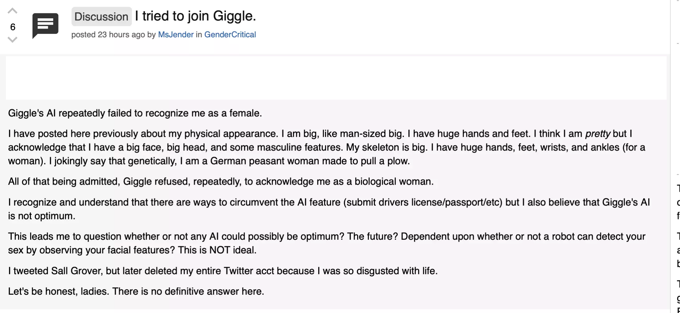"my pronouns are sex-based" okay but that tells us exactly nothing lmao. one less retard traitor to feminism.
