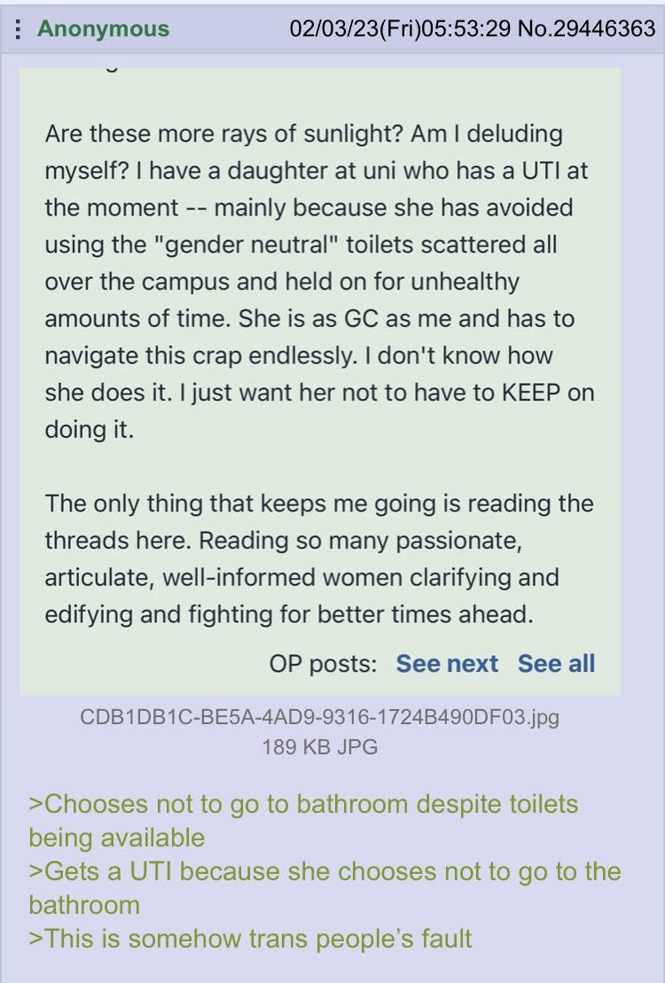 TRAs are making my daughter get UTIs!!!!!