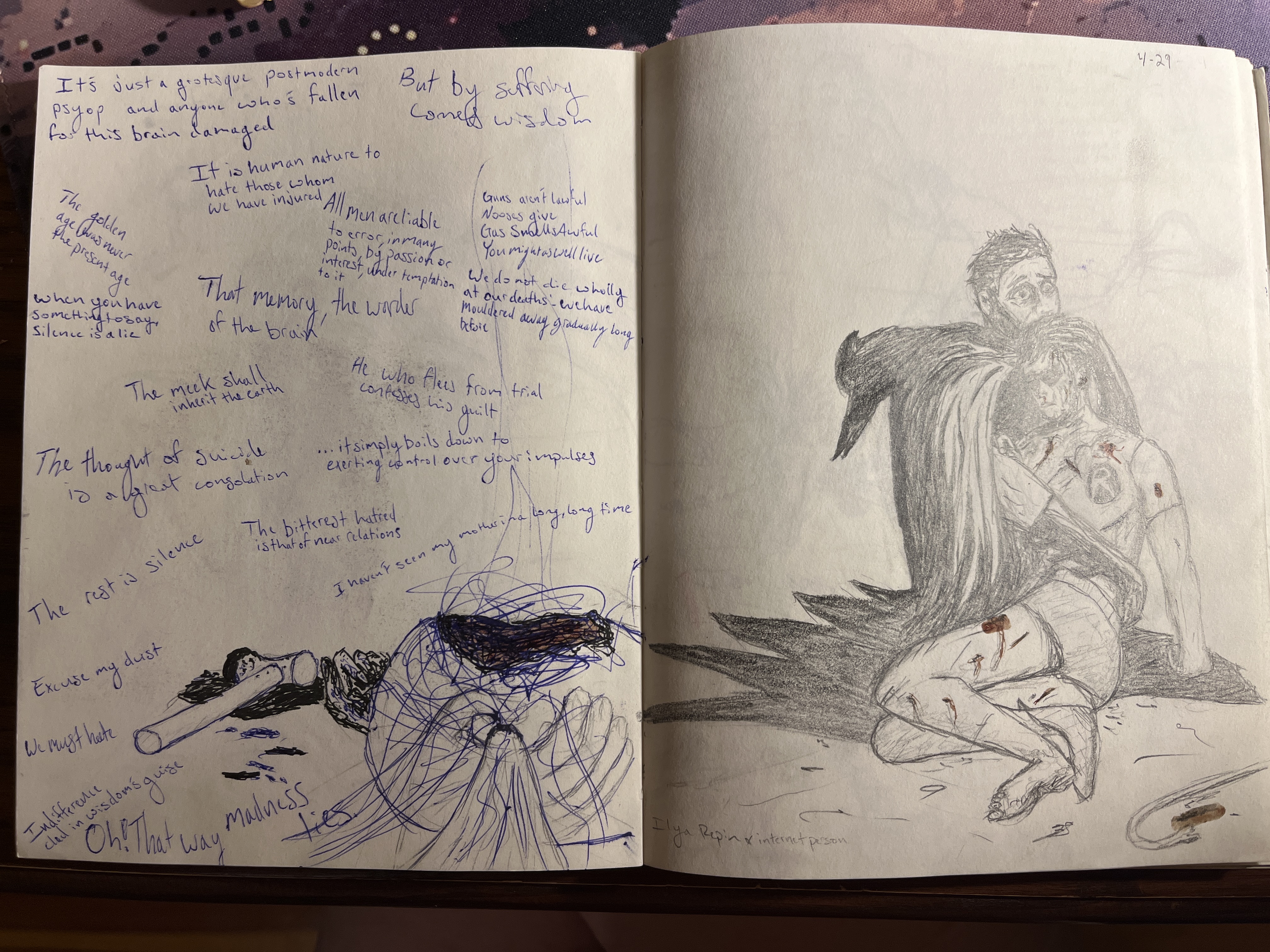I gots to sleep bc I have therapy in the morning>>42396417It’s just old blood in a picture on ur screen, like its rly not all that bad>>42396428Unfortunately I am kinda with you, though I think there is ofc an important necessary balance that hasn’t always been struck. Like Arkane Austin got shut down after they had some live service forced down their throats and by the time it released, not only did it hellla suck but they had hemorrhaged nearly all of their talent such that they had to shut down the studio—-very sad!>>42396429I feel proud of it bc I’ve nearly filled it up and I’ve gotten much better at drawing than I used to be. b4 I got into it, Iwas really bad and couldn’t draw anything for my life, now I can do a little bit better and I appreciate that>>42396453I really get what ur saying and mb I am communicating something here, some kind of bind where I need help but the help itself is deadly and the neglect has just the same result, I want people but they’re damned if they do, damned if they don’t with me