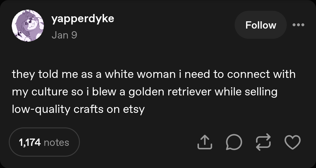 imagine it’s 2019, you transitioned a year ago. you’re 19 and you meet another clocky ngmi trutwinkhon. youre both wearing a weird mix of workwear and grandma clothes, her hair is boyish and jet black, yours is ratty and blonde. you make each other whole before the relationship falls apart from drugs, mental illness and politics during the pandemic. years later you both look back on that one ex wife as the love of your life. youre mutually blocked on disc and x