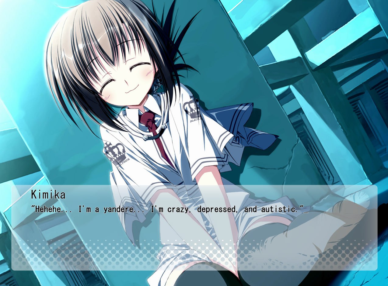 >>42457011i find it very funny it's like a continuation of the scrunkly as hell art style of old japanese eroge games on the PC-98 and other weird old things like that. I don't have the time to suffer through a long visual novel like that but she just sends me all the funny bits.afaik it's not actually a porn game though, it's like a horror thing, with that classic "weird" japanese media trait of having references to a mishmash collection of western literature references to Hesse and Kant and whatever, like in the same way that Evangelion randomly pulls Heidegger and Schopenhauer out of its ass