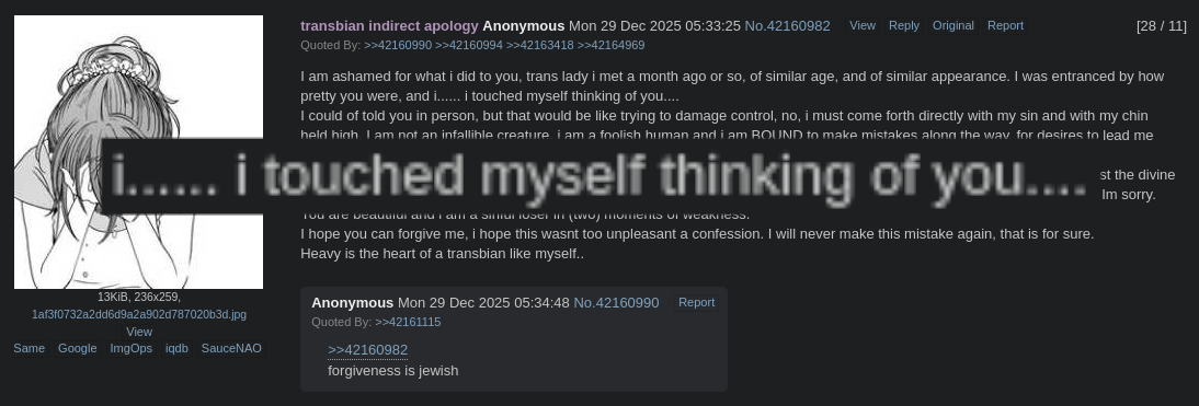 >>42495626You calling them he shows you bias pretty blatantly >>42495696What a garbled mess of mental gymnastics. Being abused over the internet by an esl incel while sitting on her bfs lap? Give me a break