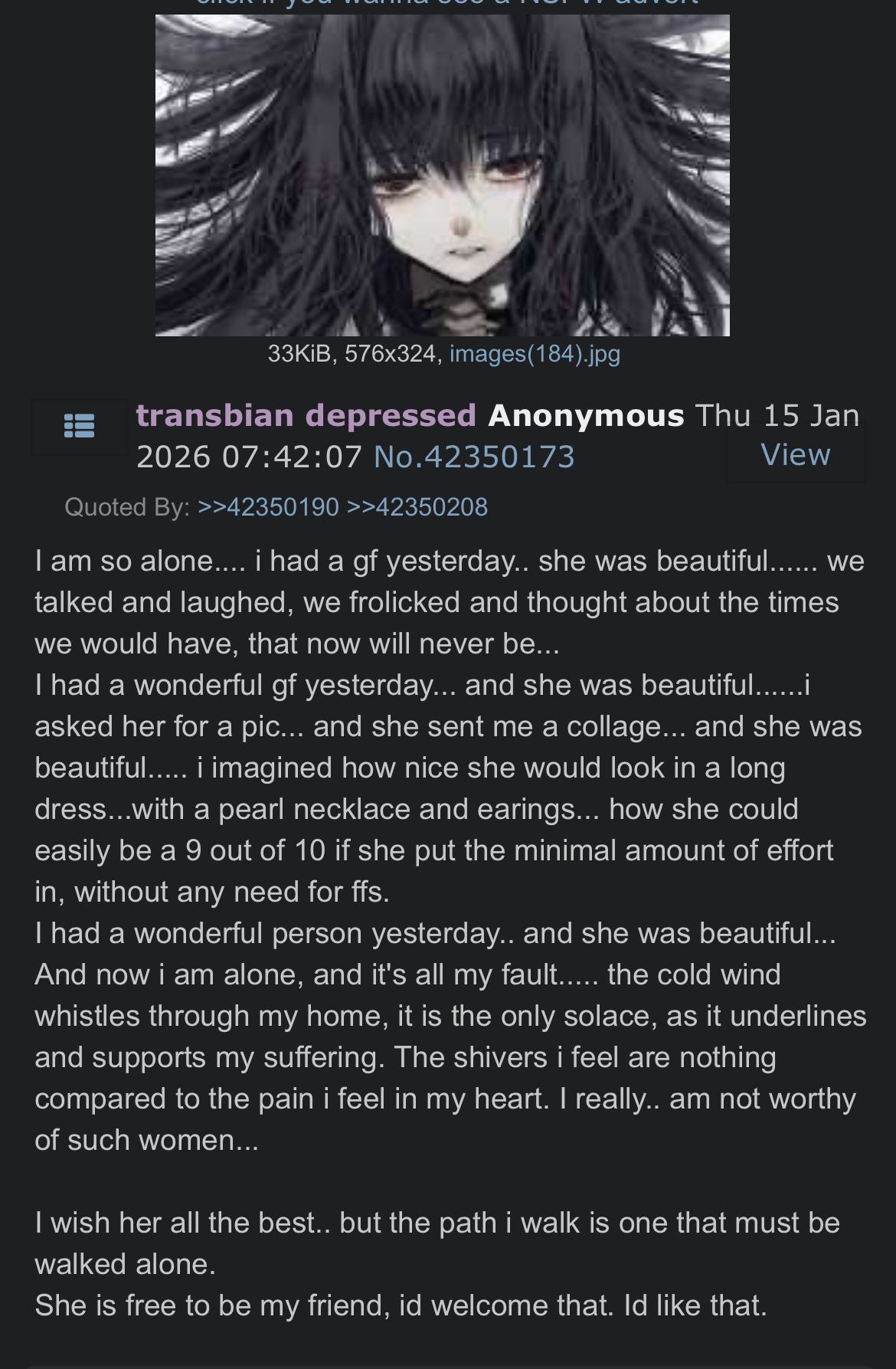 >>42491453why didn't they worki would be okay if she had rules for me too i just want to feel safe and protected and stop thinking about how scary life is