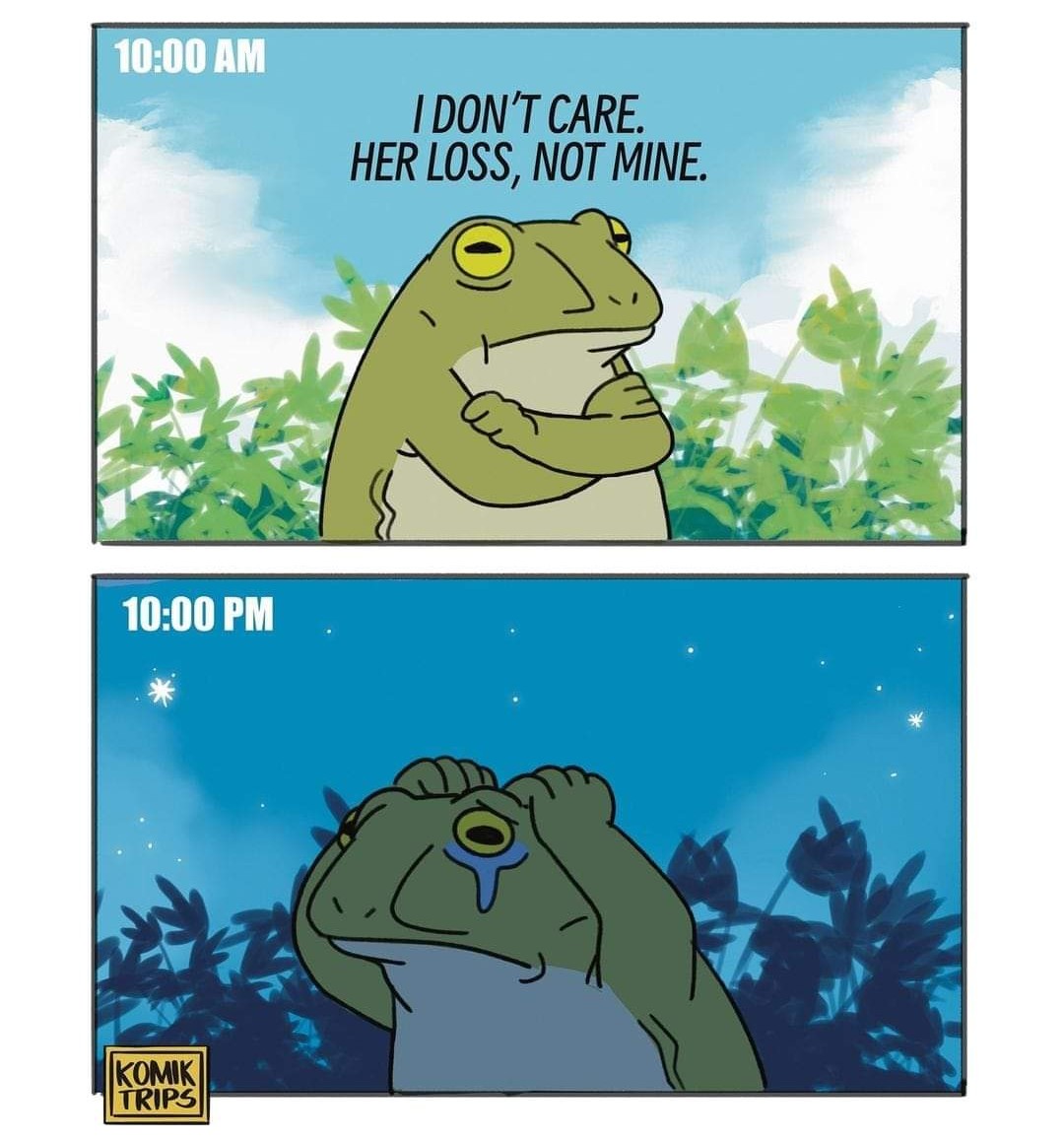 >>42501521>>42501542so basically i’ve lied that im fully over it so we can still be friends, which has led to this where i get excruciatingly detailed updates on everything because ive so aggressively claimed to be over it, and i feel like if i say im not it’ll blow my cover and affect the friendship, and i would be so fucking lonely without her