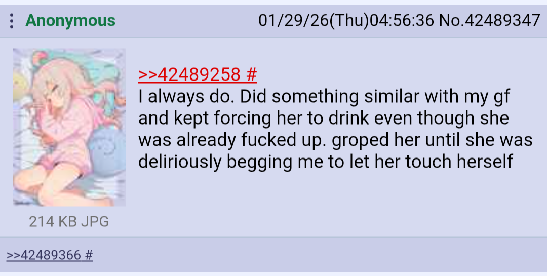 >>42501413Girls with boyfriends who post in here deserve harsh punishment.