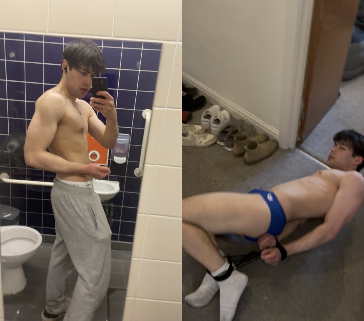 and the pre makes a big wet spot on his dirty adibas pants