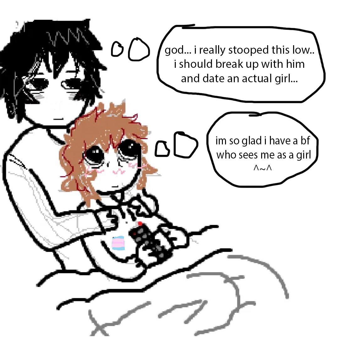 >>42526756Yeah having a bf kinda rocks, I kind of feel sorry for transbians their relationships all seem kind of empty and unfulfilling