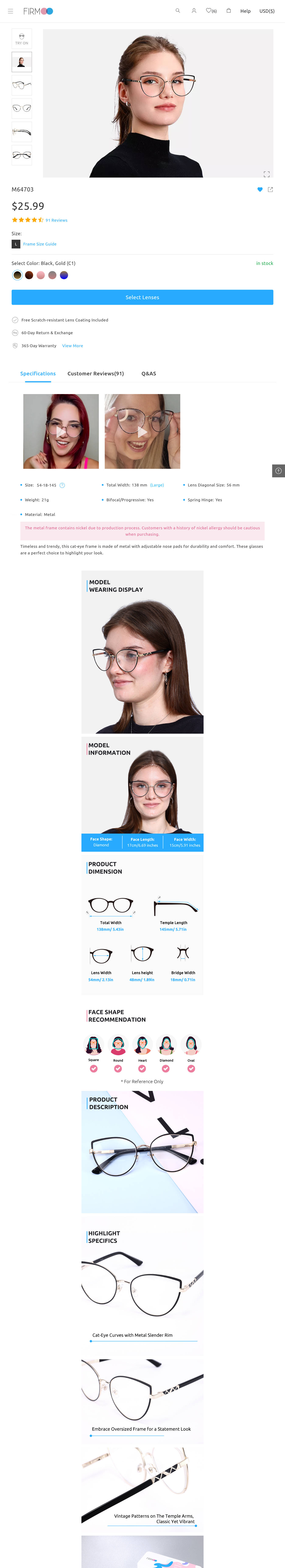 >>42568598hang on. explain this further because i want to see what else you make up while pretending to know what you're talking about.https://www.firmoo.com/productDetail/9898?master_categories_id=1i never told the site my sex, gender, face size, or anything. you can browse this site incognito and see the single size they sell those particular frames in for yourself, which is independent of your sex, gender, face size, and all other details.you can see all the models are women. you can look at the reviews and see all the photos are of women. you can see the page title is "women's semi-rimless metal eyeglasses."what is the basis for your claim that it's actually a men's size for men's frames? please explain.