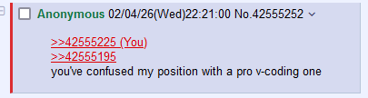 >>42555225>>42555195you've confused my position with a pro v-coding one