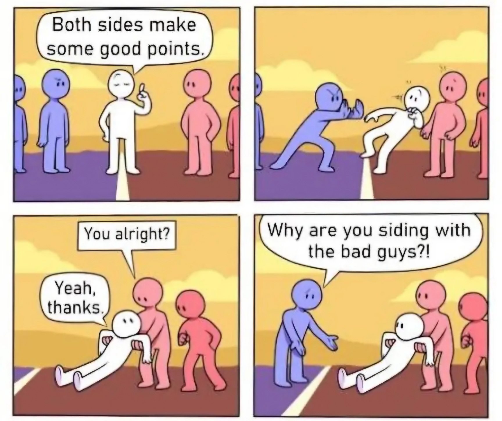 >>42561034>being sensible is being centrist is trying to weigh I mean. Yes? Although I don’t believe in absolute balance anywhere. No one is equally blameful or blameless.