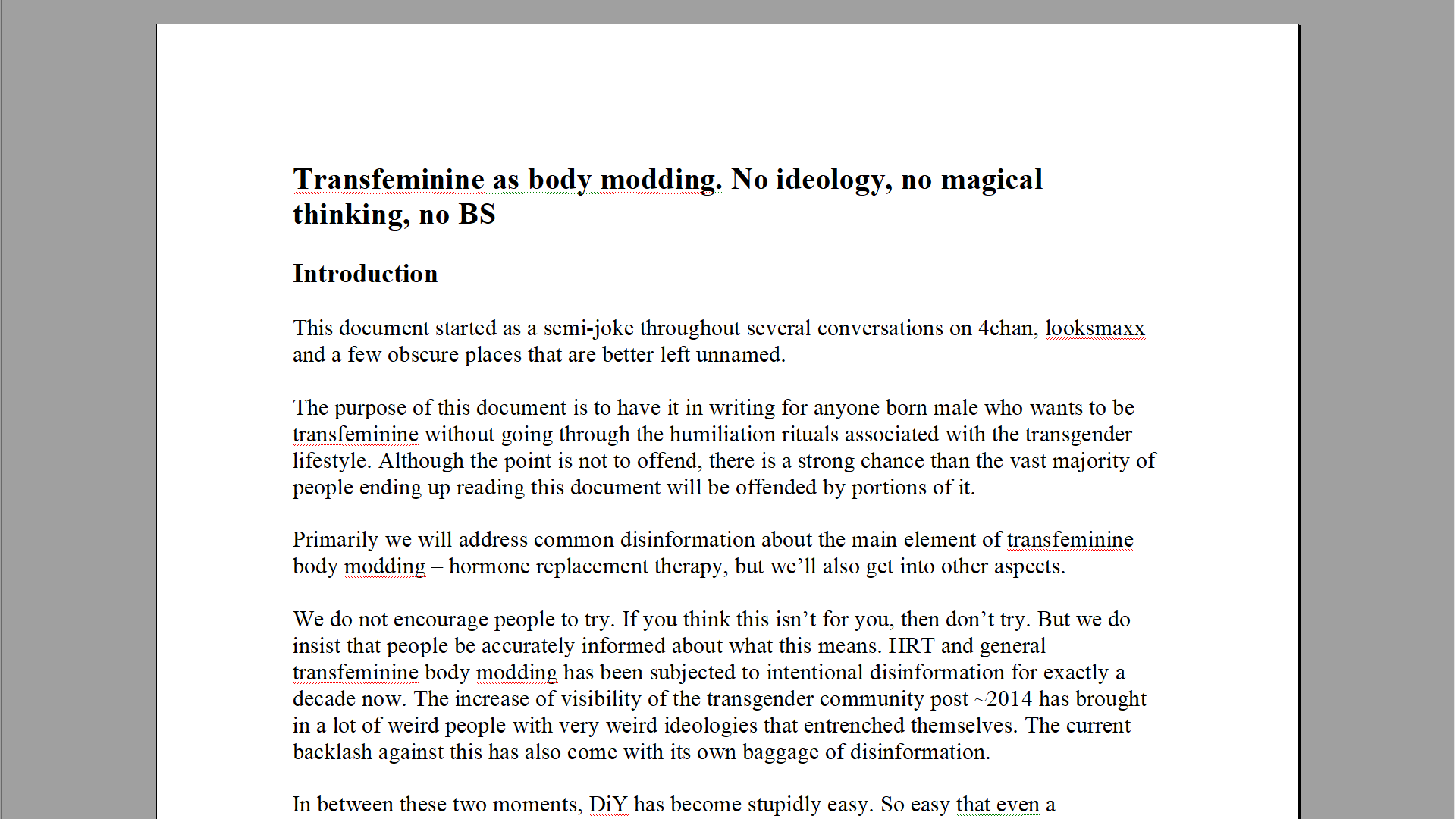 >>42575378the doc is not just for this place. Since I put a bit of work in it already, I want to be able to pass it to more "normie" estrogenized dudes as well.4chan is now normie-coded already lol.