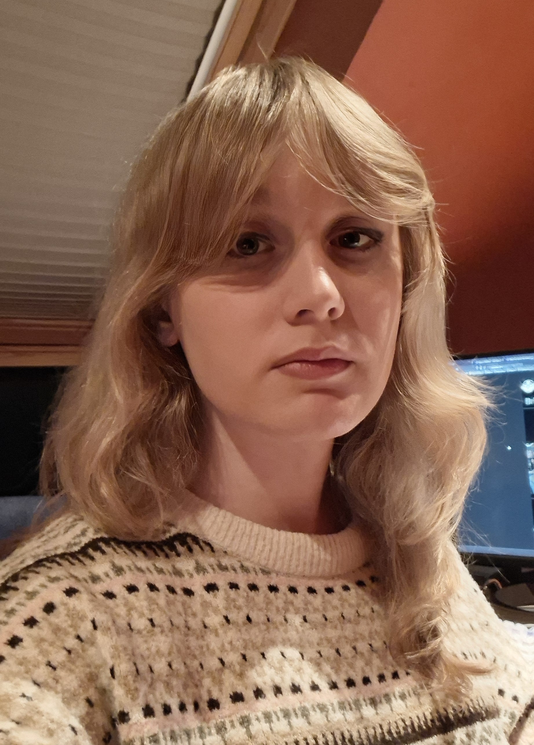 Hiya your responses to me were really sweet last (or second last?) thread and helped pull me out of this slump I was in a good bit, I never gave any feedback though! Hopefully this makes up for it lol thanks again.>>42579957The rest of your makeup really flatters you you’re lucky to not need much for that, are you using liquid liner or pencil liner though? I’d maybe practice with a brown pencil liner as it’s more forgiving when it comes to smudges, but be easy on yourself please, you’re doing well.>>42578639Can’t judge between the hair and glasses sorry, I *think* I can picture passing with your hair done and styled correctly though? I’d maybe look into slightly thinner glasses frames though and wearing mascara daily, your eyes kinda get lost behind your current ones when most trans women want to draw attention to them. Hard to judge from a stressed out pic of course so take this all with a grain of salt.>>42577183You very obviously pass (I remember your timeline posts, jealous as hell), just parroting what someone else said and telling you to start wearing higher-waisted jeans asap. Literally the mummiest pairs of mum jeans you can find lol. Again, you pass, kinda just nitpicking for the sake of the thread T_T>>42576823Realising I’m telling two folk in a row to dress more like a mum but especially applies here lol, still pass though imo especially since you’ve talked about how you pass irl before I think?Everyone else passes with no obvious feedback :)