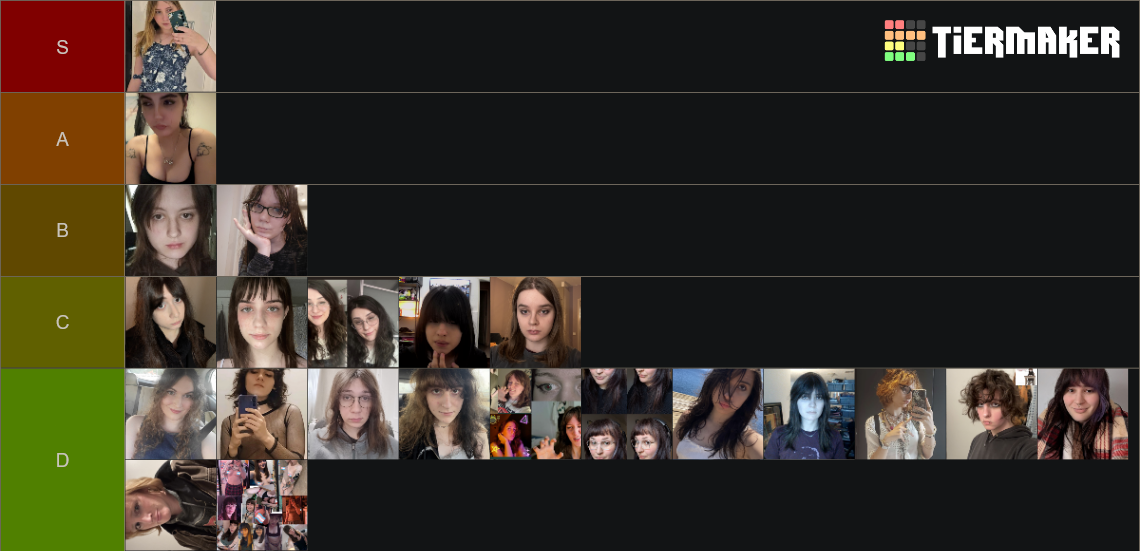 >>42578707new sluts have been added to tier list. new girl with square glasses could make an a or b tier slut if she took more showers and had cleaner hair. if you are reading this... look hair tutorials!also i am not masturbating this time.i like the new collages specially the ones that show much body but they make it hard to see in tier lists... which is not good