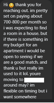 >>42610682Ok here we go.It seems like she didnt understand I was offering to pay more so she could afford a nicer place?