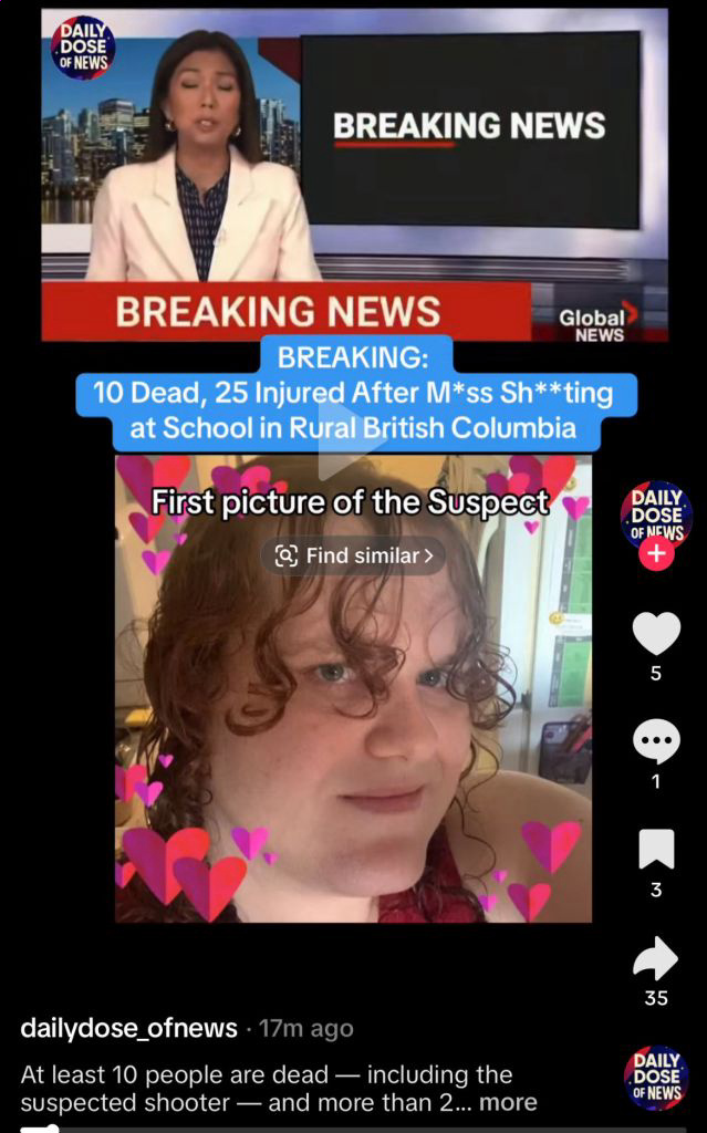 >Not identified by authorities>Nobody interviewed by the media has identified the shooterThis is some low quality sharty shit. Even for them.Give it a few days and it will turn out to have been some /pol/ incel that got cucked by a first nations guy or something equally as pathetic - statistically that is far more likely.