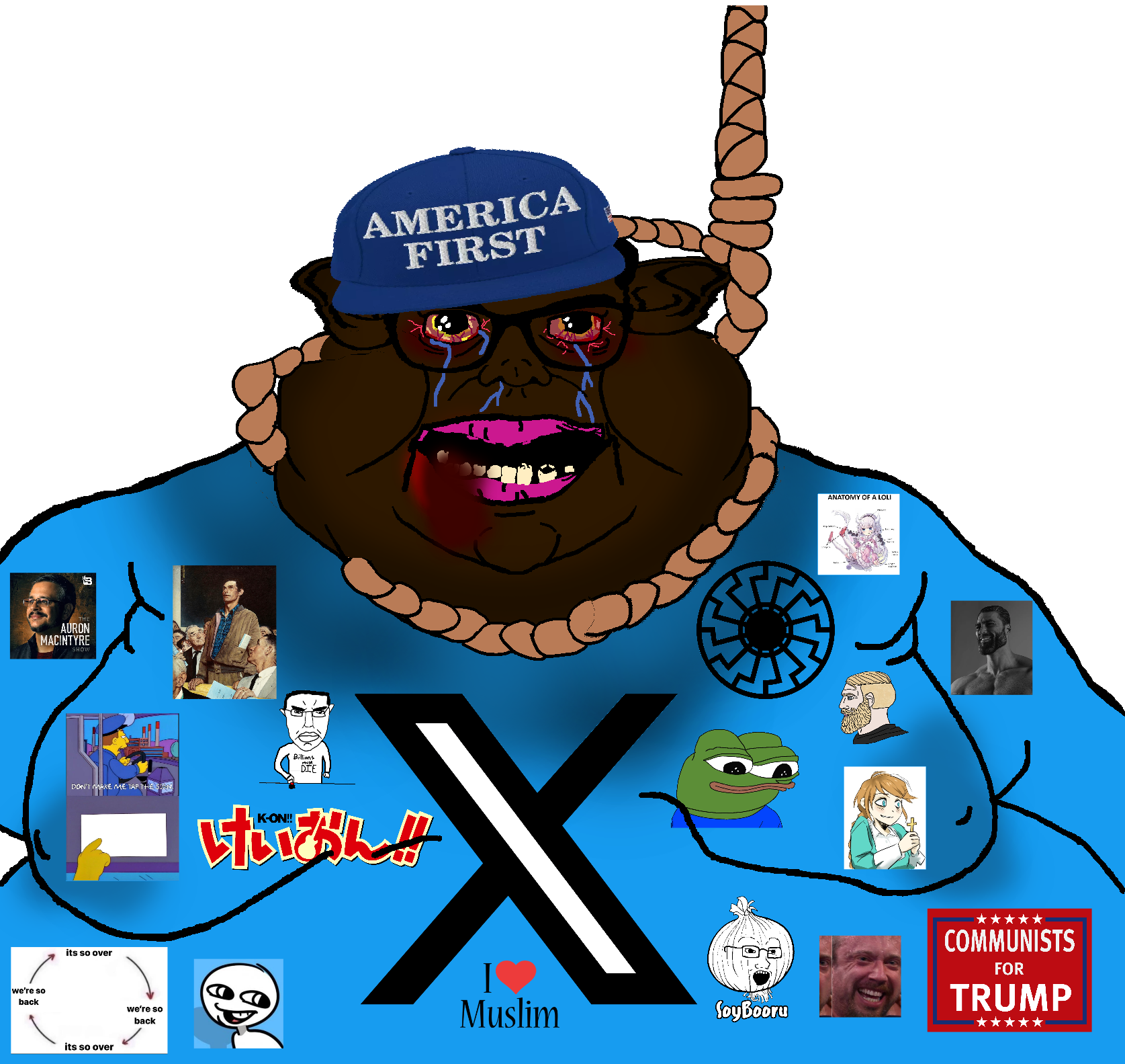 at this point, im sorry, but i dont even know what to do but laugh. what a joke that this is. this is most peak clown world possible. literal gorilla hons becoming the school shooters, while white christian nationalists try to whitewash away all their rotting shit