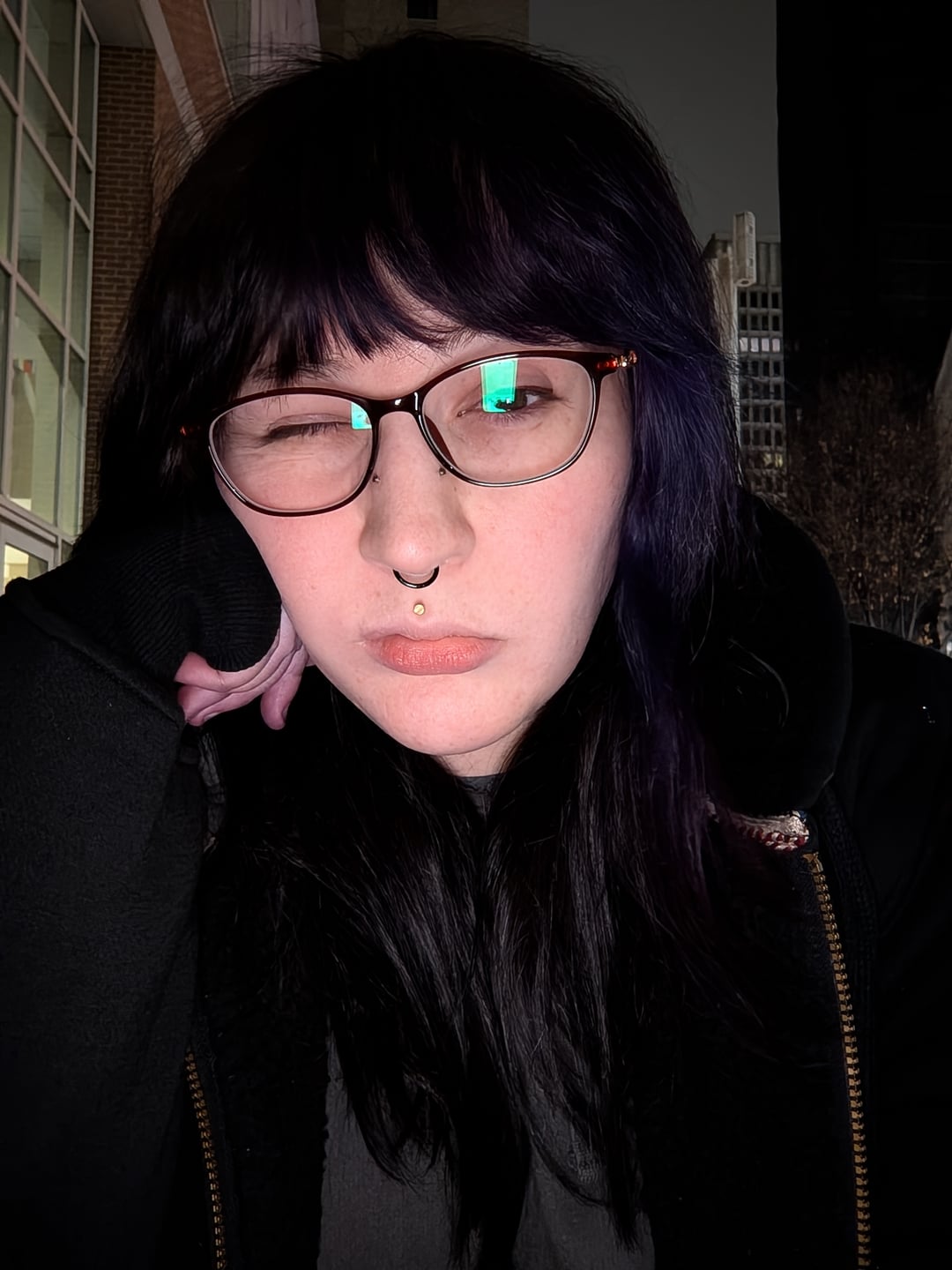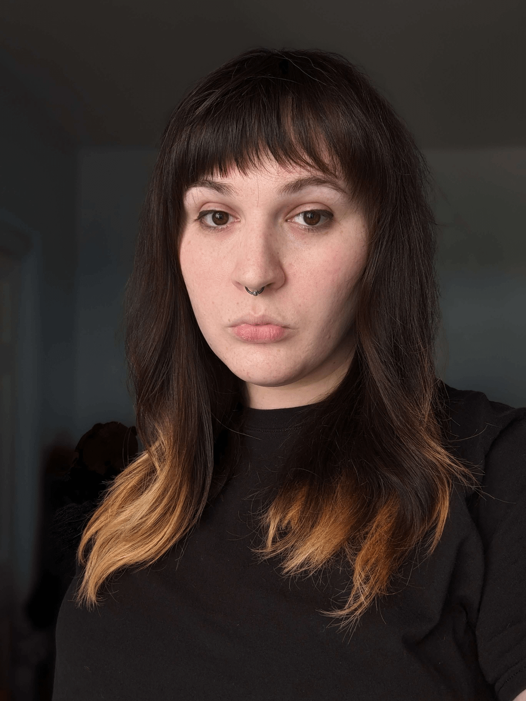 girl with giant septum piercing complimented mine she also had bruises all around her neck