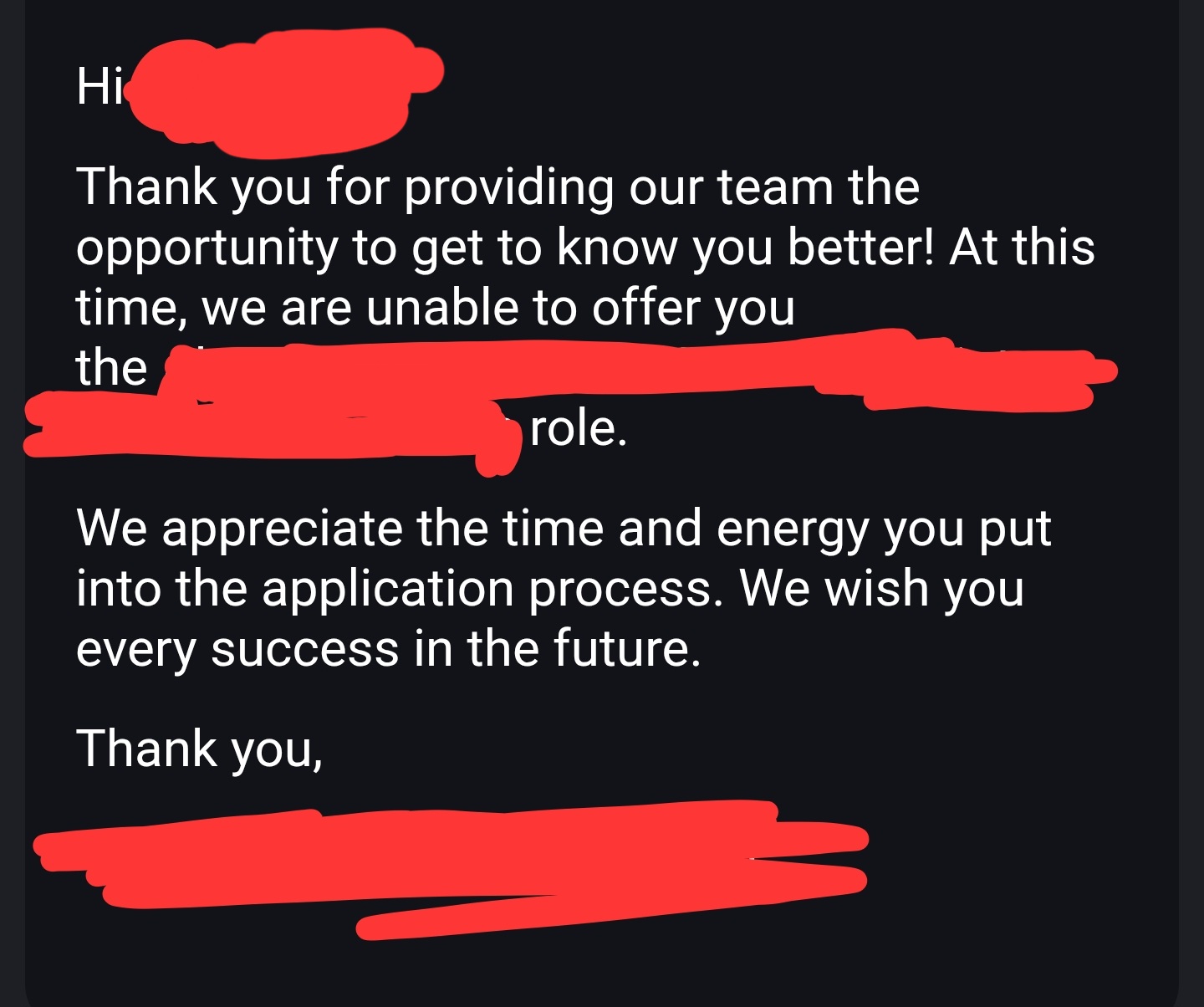 Well I just also haven't spoken to him outside of very sporadically here every few weeks. So there's nothing to miss out on at this point.