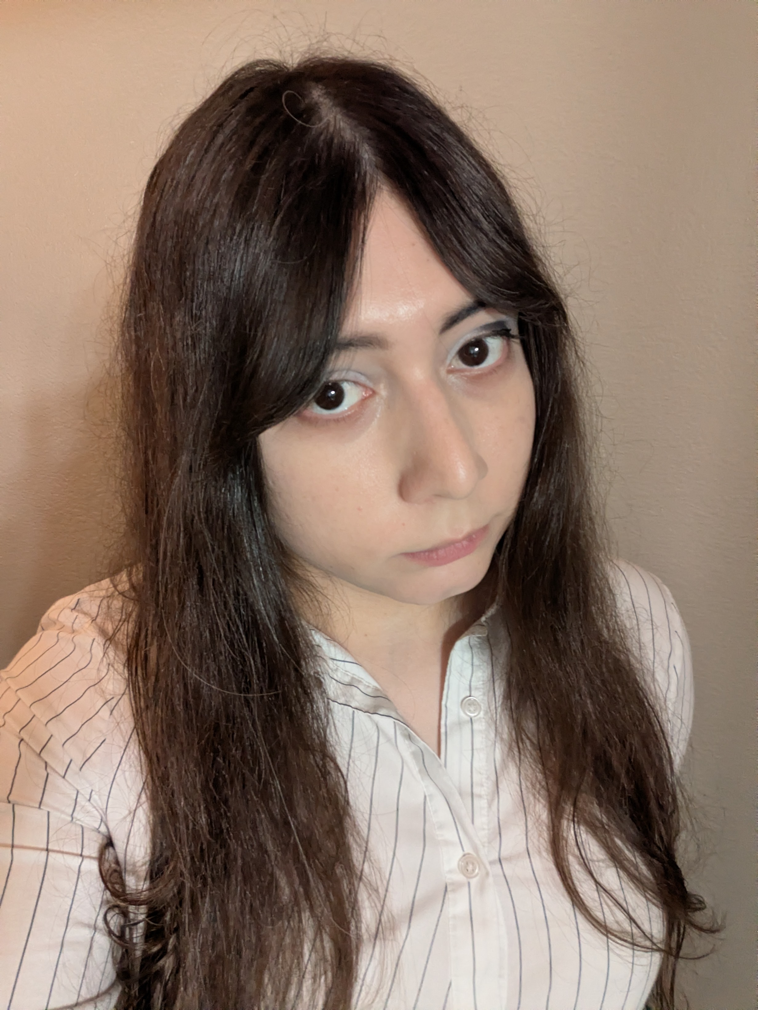 >>42722813Definitely passing, idk makeup to be honest but what you have now looks good and brings out your big eyes >>42722788You pass to me as a mousey girl>>42722887Older woman pass perhaps