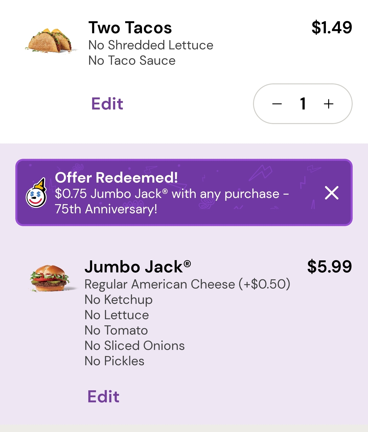 Dubs and I go get jack in the box