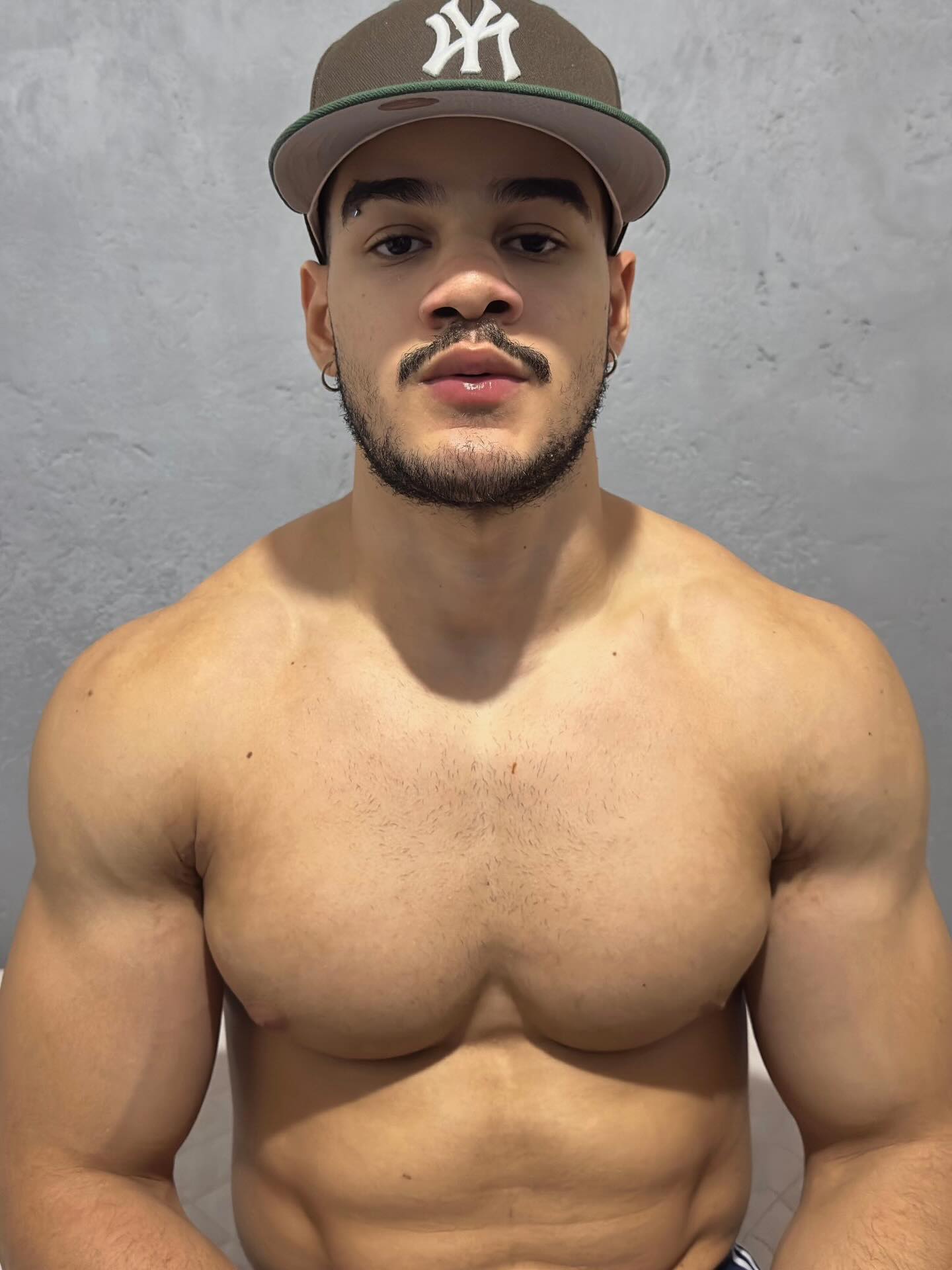 > a hot shirtless stud in swim shorts posing for the gaygen OP