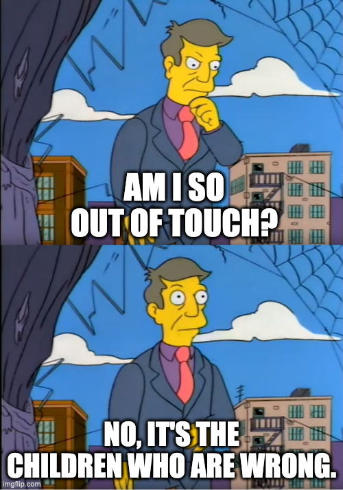 >>42766981Yeah what I'm doing wrong is dressing like a normal person. I don't know who decided that dressing like a circus clown is "openly queer", when I go to the regional beach town favored by 100% cis gay men nobody seems to doubt if I like cocks, but in the city if I venture into the forbidden "queer" place I'm suddenly a self-hating closet case because I ironed my shirt and I don't look like a creature from the Star Wars cantina.I think it's just a generation thing, trans is heavily dominated by zoomer mentality which is basically high school brain, you dress to piss off your parents, primarily, and as soon as you meet anyone you size them up ("clock" them so to speak) by whether they're dressed to piss off their parents too, and you decide, preconsciously, based on their clothes, if they're the bully or the one to be bullied. That's the dynamic for all social interaction. And trans people are thirsty for someone to bully, having been denied this their whole lives. So even the older ones absorb this because zoomers absolutely dominate trans spaces online where most transgender culture lives.