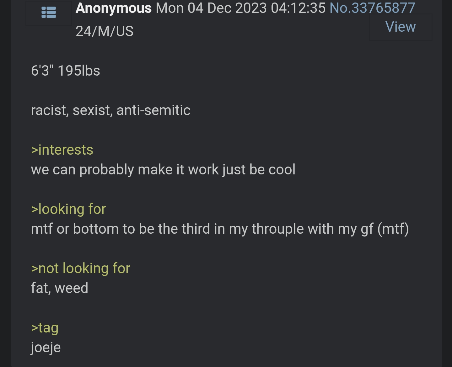 im racist, and trans inclusive sexist