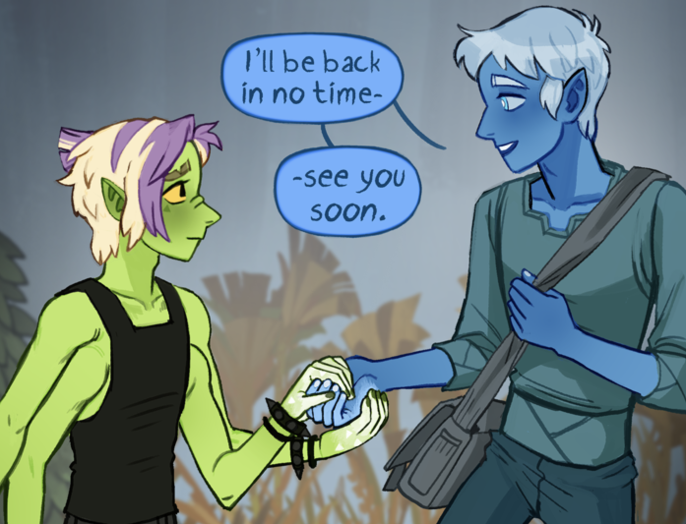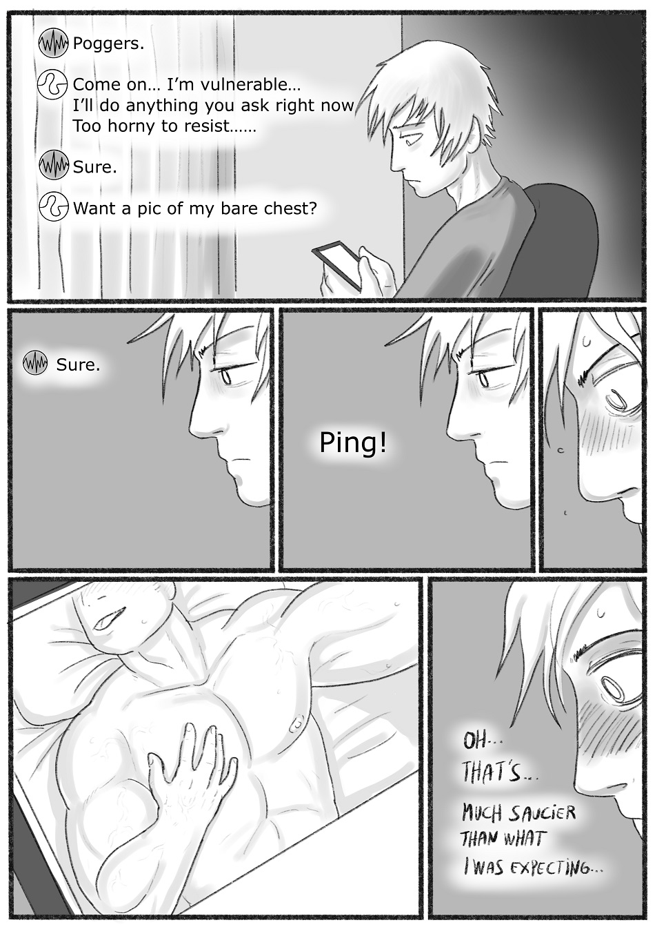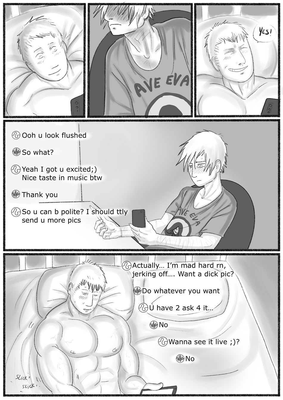 >>42956351>>42956438And even though it's SFW, the mains in Novae are at least 'together' by the 4th chapter (currently on it's 18th chapter). Ghost Junk Sickness has been going for about ten years as well, but it's more of a story-driven sci-fi comic. Aside from queer window-dressing sprinkled throughout, we only got this scene in June of last year (I still like this one a lot though).