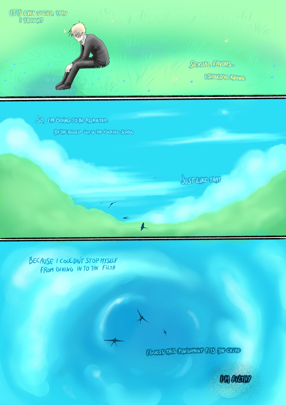>>42964364Suicide boy is kind of a mixed bag. The shake ups in chapter 2 suck. Not helping is that it's in hiatus and that the author just openly and brazenly queerbaits