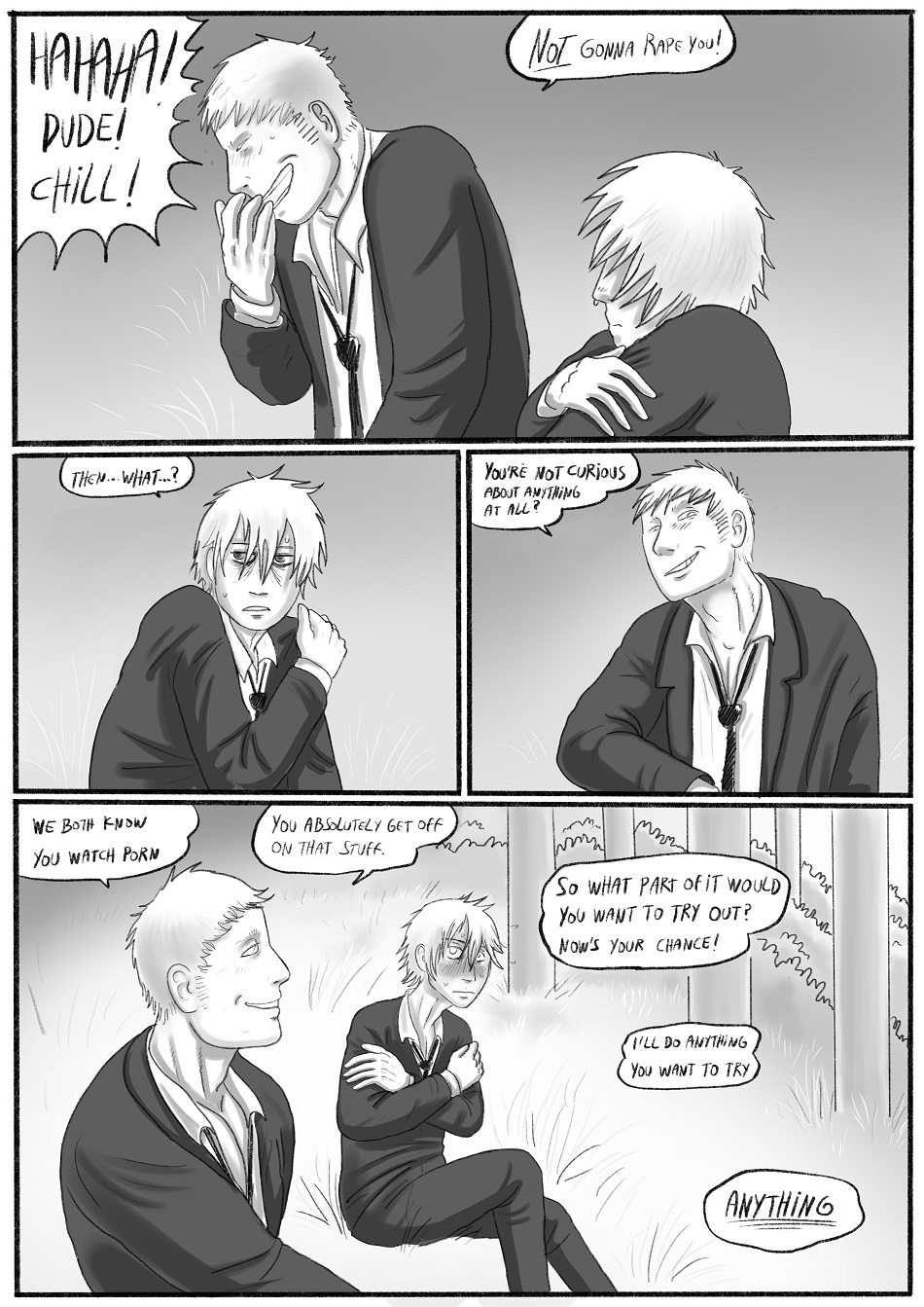 https://blackmailparadise.the-comic.org/comics/1/#content-startI'll post the first of twelve chapters to see if people grow to like it.I dishonor /wcg/ by not coming up with clever image names, too much to do for 57 pages.