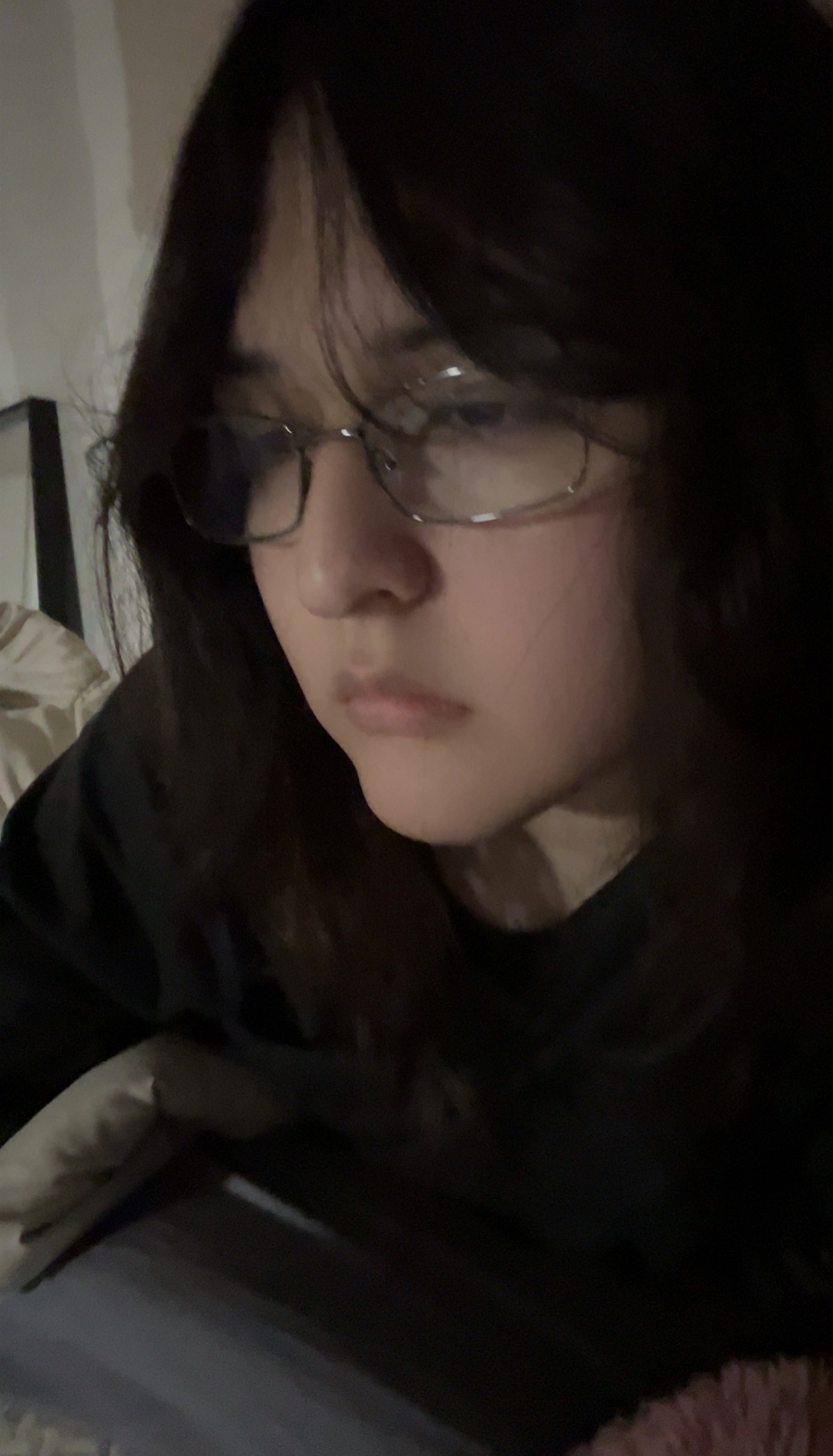 kinda dark but side part + brushing out my hair. no more middle part for me i think