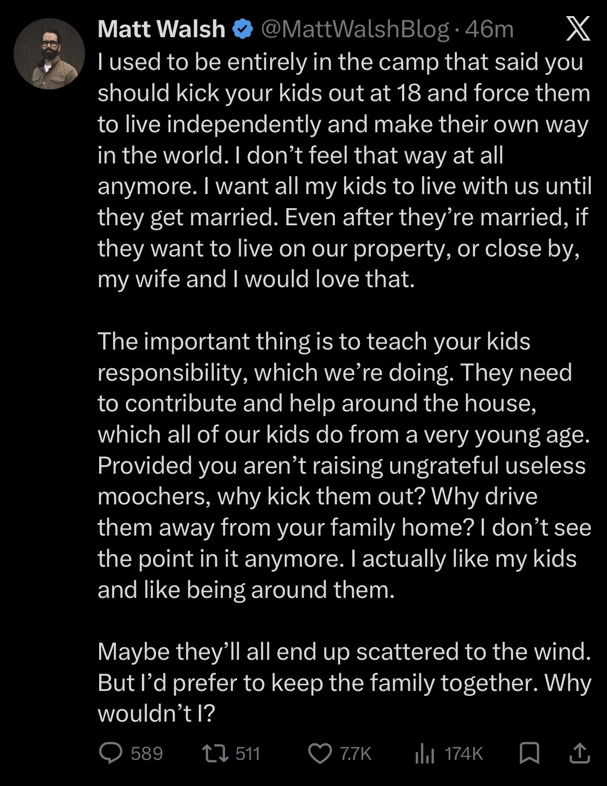No, only his son. His son is sweet and innocent and finding his way as a grown man.