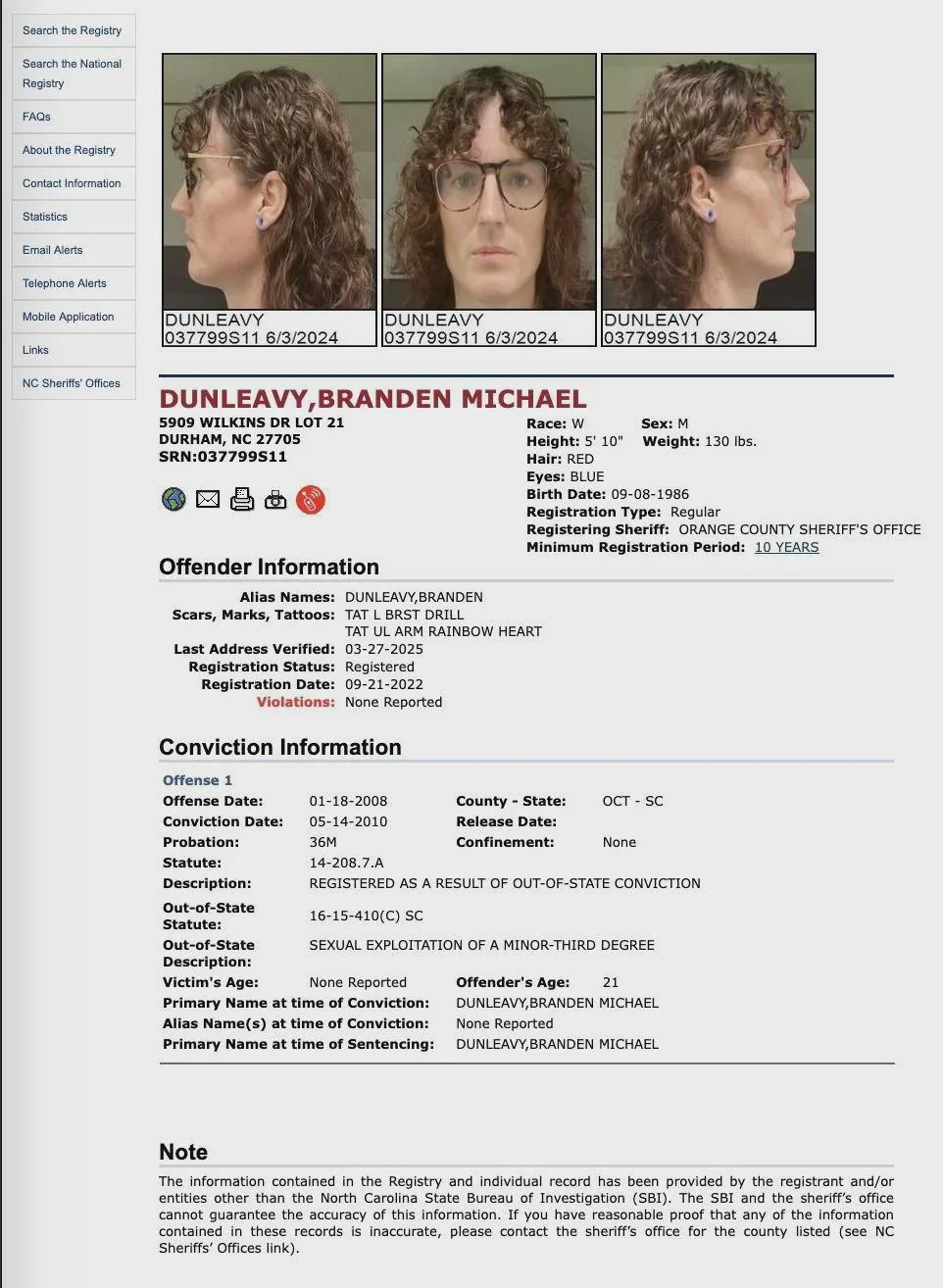 >>42957041It means they live in NC but the conviction happened in SC you fucking illiterate, read the image