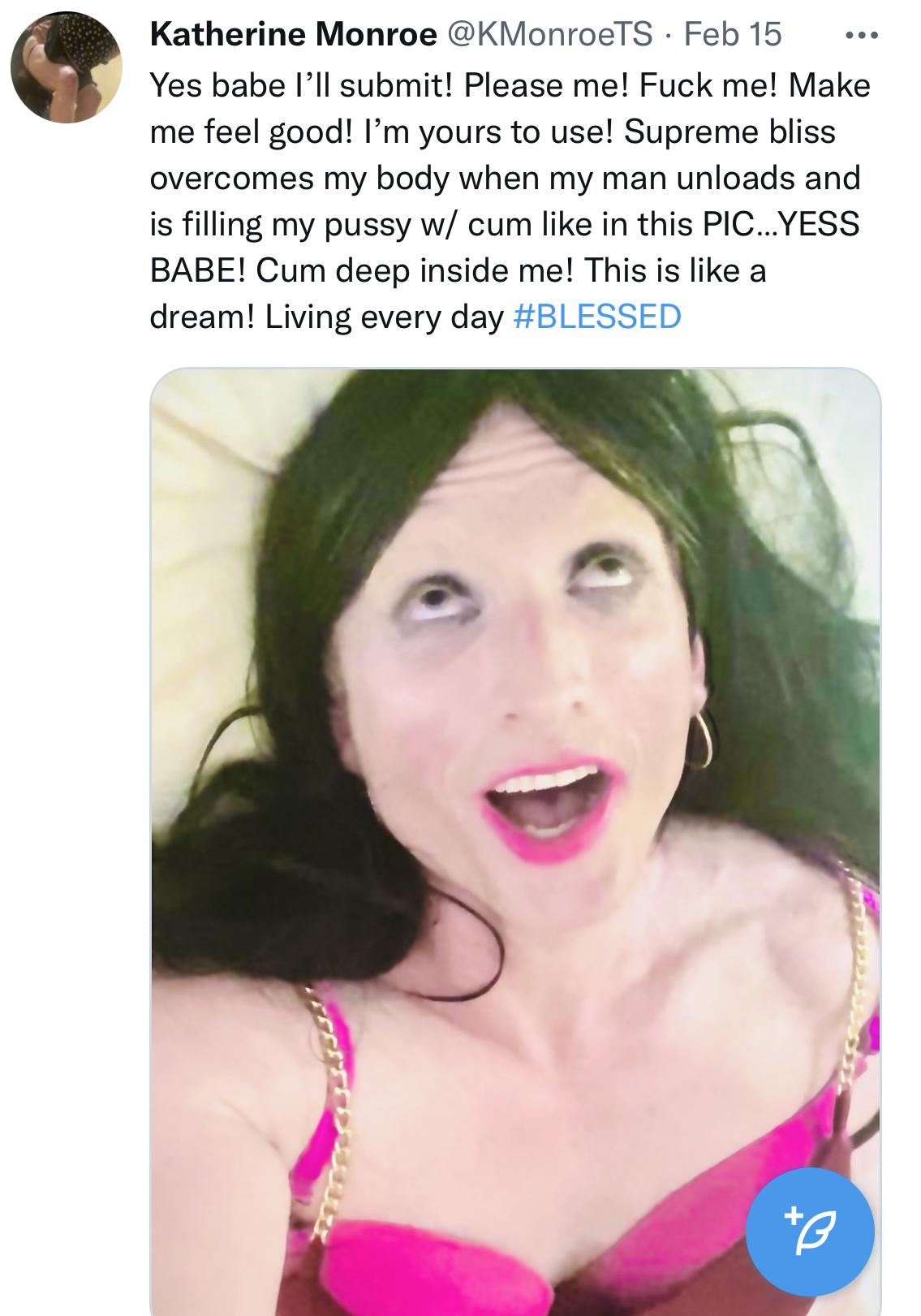 >>42964306I don't understand how people see sissies as repfuel.Sissies are what happens when a person reps for too long that they turn it into a fetish then they john 50 just to fulfill their fetish and give everyone a bad name.If anything sissies are anti-rep fuel they should encourage you to troon out as soon as possible before you turn into one.