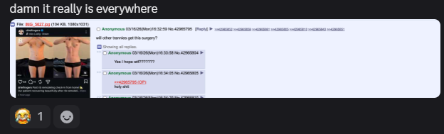 >>42968161you could use that argument for literally any surgery bc every part of the body is somewhat dimophicat some point it’s just cosmetic and i wish trannies would just admit that most of the time theyre either bdd or ngmi