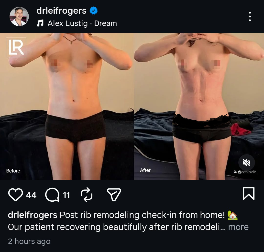 >>42983623Seems like it’d be better just to go clavicle reduction and hip augmentation with corset training to lose an inch or two. I’m 32-33 inches under bust at 190 lb and corsets and not being a fatass would take me to 30 inches.Ribxcar might end up being relatively fine healthwise but it feels like something that could go horribly wrong, and if you’re in brick shithouse territory (37> inches) then the rest of your proportions are probably fucked too