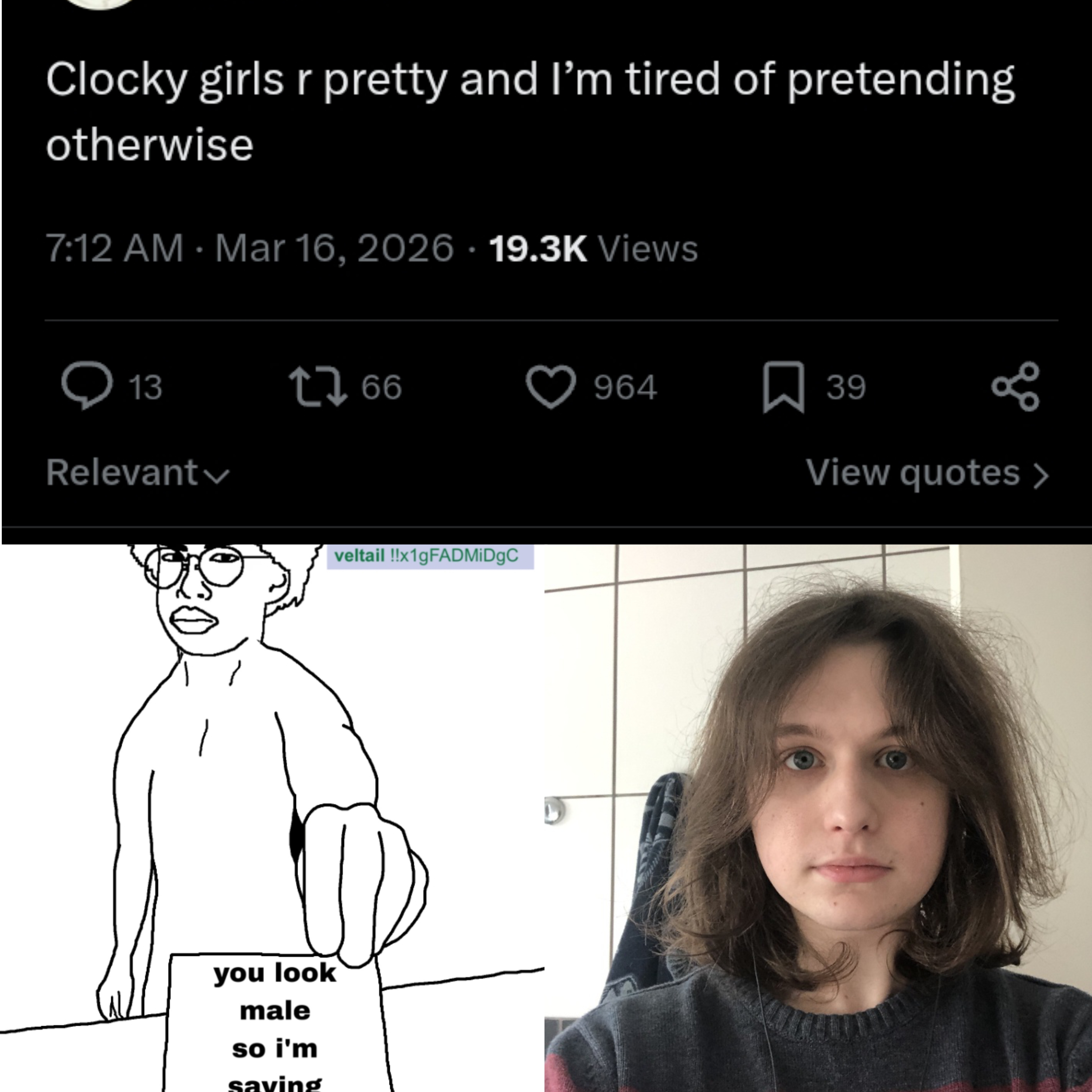 >>42968365i'm a passoid transbian and i prefer girls who are a bit clocky...
