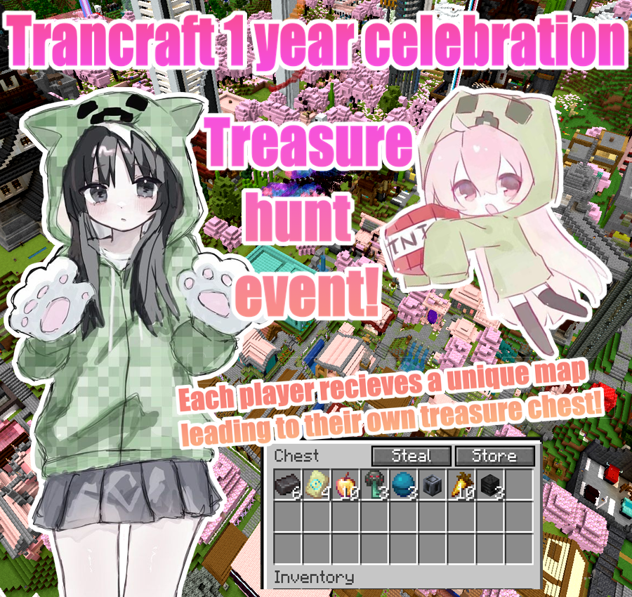Our trans minecraft server has been active for 1 year, join now to participate in our celebration before all the unique maps are gone. You'll also receive a special shield with the server's insignia. Drop your mc username in our discord for a speedy whitelist: https://discord.gg/8vKpdT8C9X