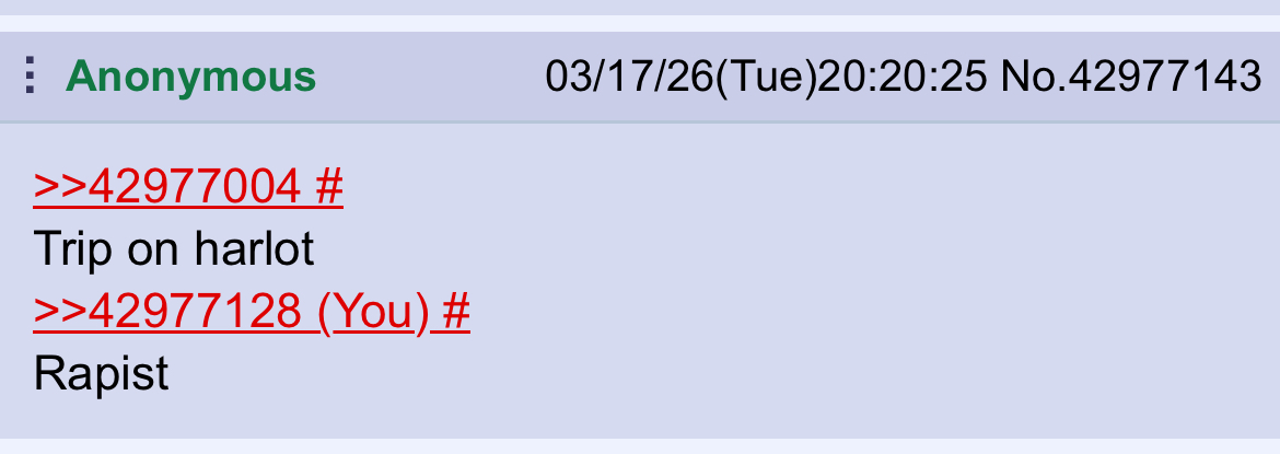 Yeah office rapist isn't sneaky at all. Avatarfagging but refusing to use a trip even though she used one before just so people can't look up all the horrible things she has said to others like when she called lago a spic or threatened to rape her