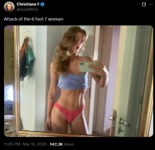 >>42979803You know she's actually like 6'2 and wearing heels right?
